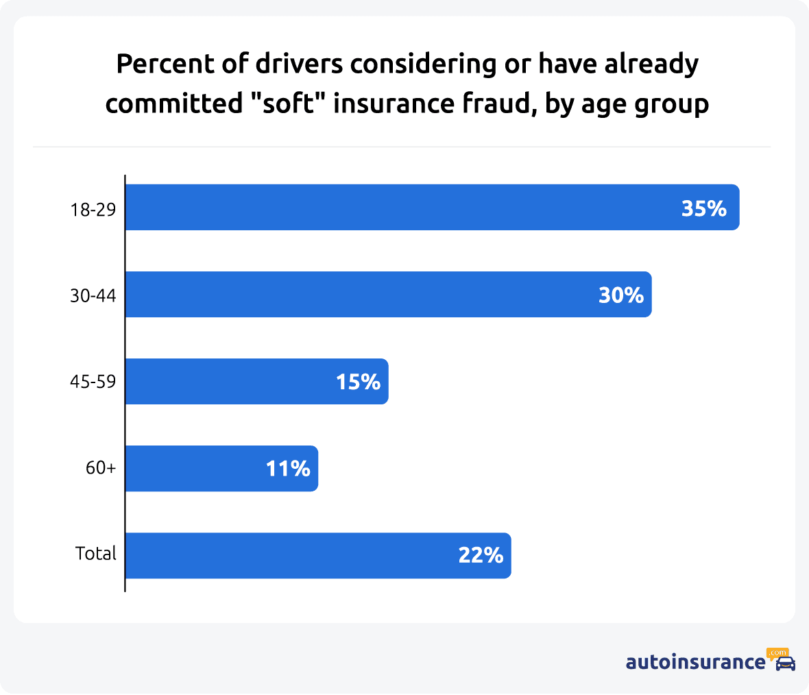Among drivers under age 30, more than one-third admitted that they had committed or would contemplate fraud to help afford auto insurance. That number steadily declined as motorists aged, likely reflecting the lower premiums and greater wealth of older motorists.